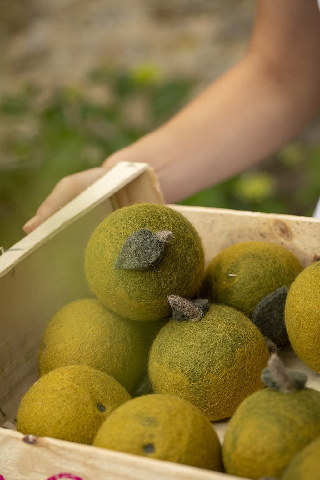 Add a touch of playful charm to your home with the MUSKHANE Felt Apple. Handcrafted in Nepal from soft, renewable wool felt, this delightful apple is perfect for both festive decor and everyday joy. Whether displayed in a bowl with other felt fruits, adorning a seasonal table, or used in imaginative play for children, it brings warmth and a sense of natural simplicity to any space. Its gentle texture and timeless design make it a sweet accent for the home all year round.
