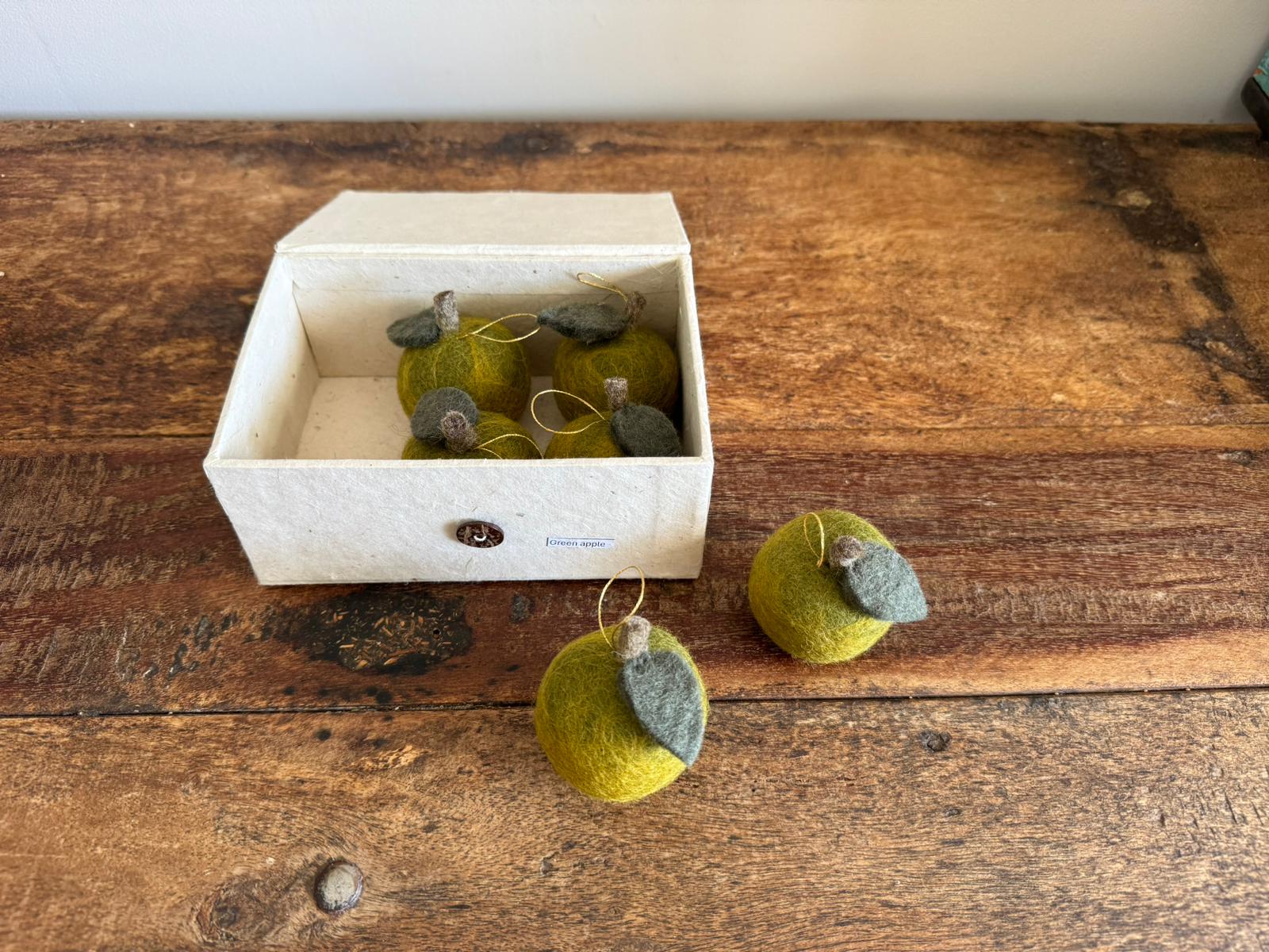 Add a touch of whimsy to your holiday décor with this charming set of six Green Apple Christmas tree decorations. Each piece is traditionally handcrafted by skilled artisans from Muskhane in Nepal. Made from felted sheep’s wool, a natural, high-quality, and renewable material, these delightful ornaments will bring a fresh and vibrant flair to your festive celebrations.