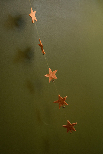 The Falling Stars Garland features six delicately handcrafted felt stars adorned with charming little bells in a range of enchanting colours—olive, pistachio, blush, and gold. Perfect for adding a whimsical touch to your space or bringing festive cheer, this garland will brighten any room, whether hung on the wall, a Christmas tree, or draped across a window. Each garland is lovingly made by hand by artisans in Nepal, using 100% wool felt, making it a delightful and unique decorative piece.