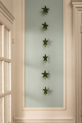 The Falling Stars Garland features six delicately handcrafted felt stars adorned with charming little bells in a range of enchanting colours—olive, pistachio, blush, and gold. Perfect for adding a whimsical touch to your space or bringing festive cheer, this garland will brighten any room, whether hung on the wall, a Christmas tree, or draped across a window. Each garland is lovingly made by hand by artisans in Nepal, using 100% wool felt, making it a delightful and unique decorative piece.
