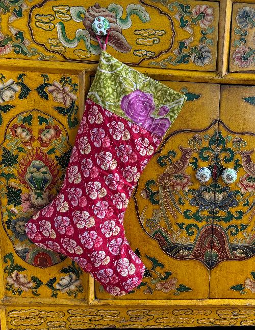 Add a touch of artisan charm to your festive season with this beautifully handcrafted Christmas stocking, made from vibrant recycled cotton sarees. Featuring delicate kantha stitching, each stocking is a unique treasure, exuding warmth and heritage. No two pieces are alike, making them a distinctive addition to your holiday decor.