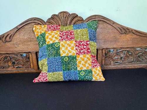 Recycled Saree Patchwork Cushion (Blue & Green)