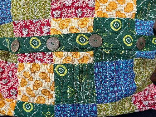 Bring vibrant colour and texture to your home with this unique, artisan-made cushion. Each cushion is carefully crafted using recycled saree fabric, giving new life to beautiful, pre-loved textiles. The patchwork design features an array of vibrant colours and patterns, adding an eclectic touch to any space. The cushions are handmade with intricate kantha stitching by artisans at Prokritee, ensuring every piece is one-of-a-kind.