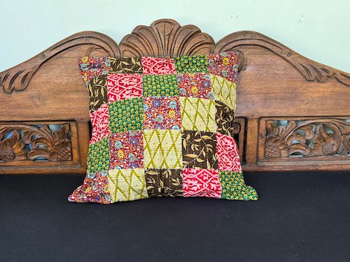 Recycled Saree Patchwork Cushion (Green & Pink)