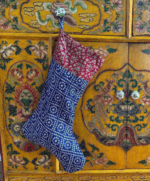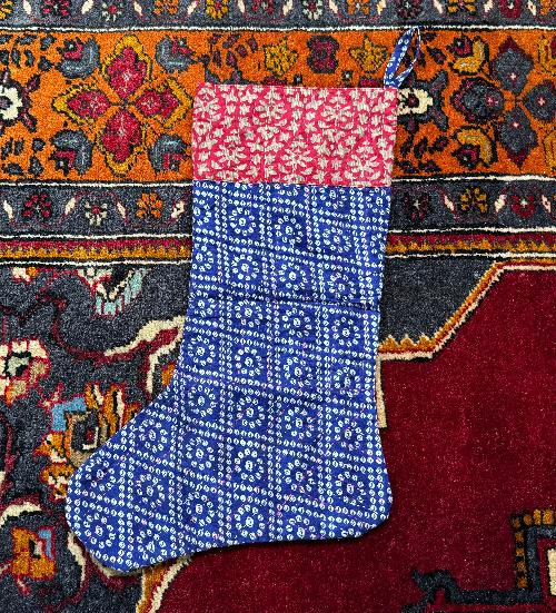 Add a touch of artisan charm to your festive season with this beautifully handcrafted Christmas stocking, made from vibrant recycled cotton sarees. Featuring delicate kantha stitching, each stocking is a unique treasure, exuding warmth and heritage. No two pieces are alike, making them a distinctive addition to your holiday decor.