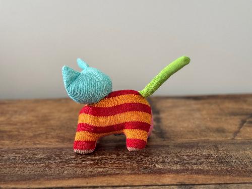 Handmade by the skilled artisans of Barefoot Ceylon, Seeny the Cat is part of a collection designed especially for babies. Crafted from 100% hand-loomed cotton, Seeny’s compact and colourful design is perfect for tiny hands to hold and engage with. The vibrant patterns spark curiosity and bring a touch of playful charm, making Seeny an ideal companion for little ones or a whimsical decor piece.