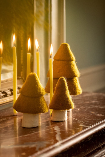Embrace the festive spirit with MUSKHANE’s handcrafted Set of 3 Christmas Trees. Each charming tree is made entirely from 100% wool felt by skilled artisans in Nepal, creating a cozy and poetic ambiance in any room. Adorned with delicate embroidery, these delightful decorations are perfect for the holiday season or to add a whimsical touch to your festive table. Available in two lovely colour options: Olive and Pistachio.