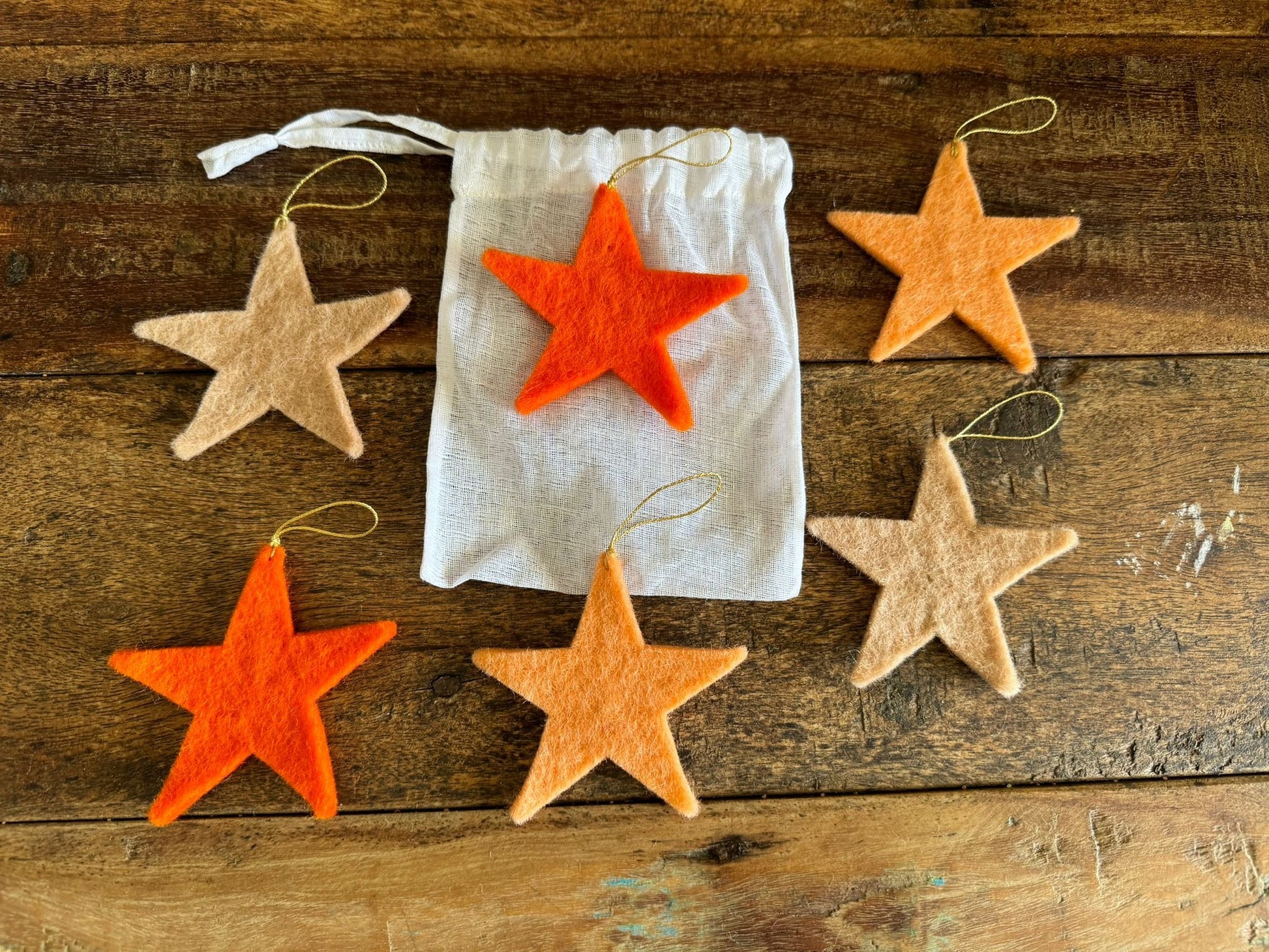 Add a touch of elegance and whimsy to your festive decor with the Set of 6 Festive Stars Decorations in Harmony Blush. These charming stars are handcrafted from soft felt, bringing warmth and a gentle aesthetic to any space. Perfect for hanging on a Christmas tree, adorning gift packages, or simply as part of your seasonal decor, each star's delicate design adds a delightful accent. This beautiful set comes presented in a cotton gauze pouch, making it an ideal gift for loved ones or a lovely treat for yourself.