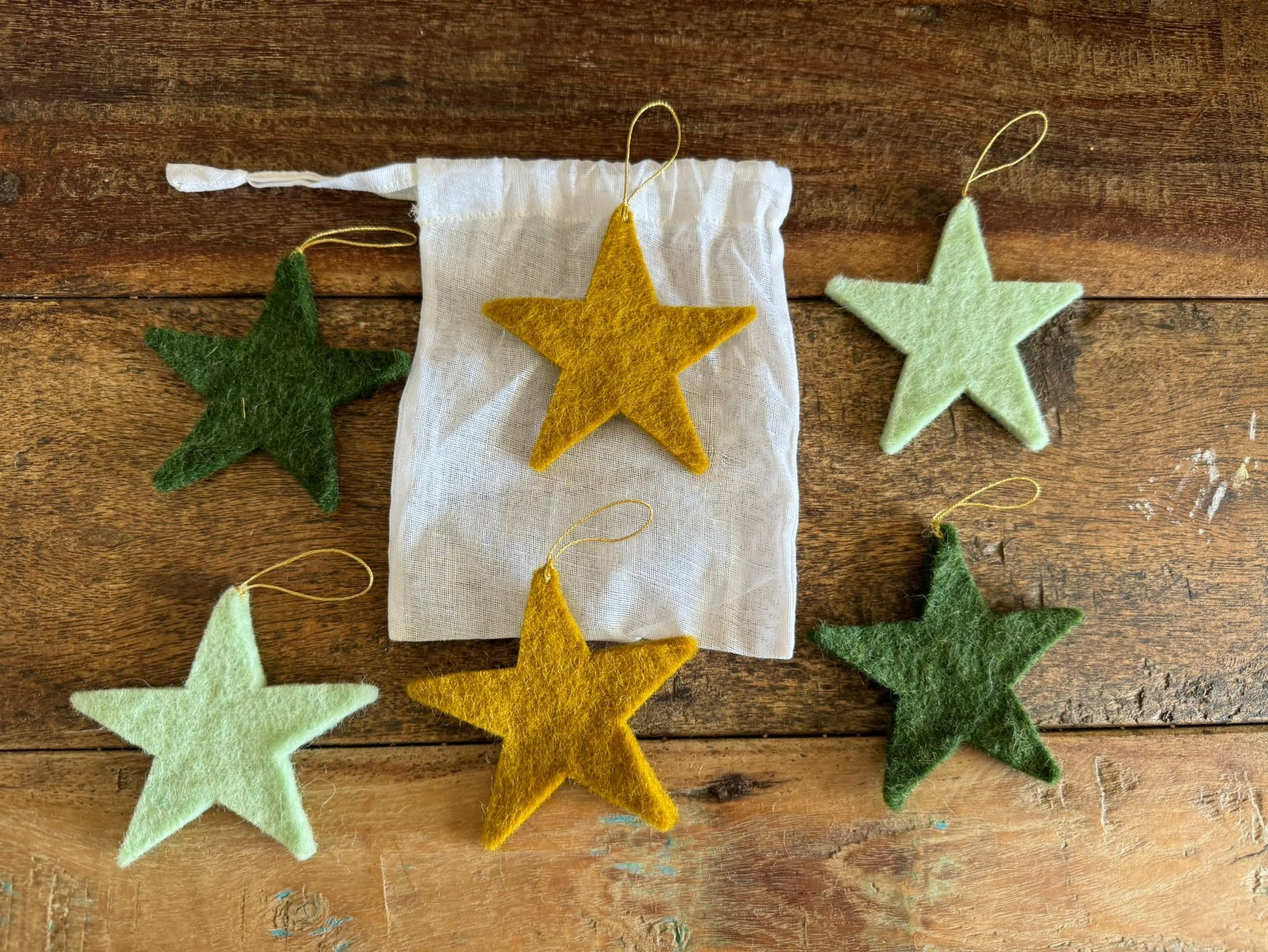 Add a touch of elegance and whimsy to your festive decor with the Set of 6 Festive Stars Decorations in Harmony Mint. These charming stars are handcrafted from soft felt, bringing warmth and a gentle aesthetic to any space. Perfect for hanging on a Christmas tree, adorning gift packages, or simply as part of your seasonal decor, each star's delicate design adds a delightful accent. This beautiful set comes presented in a cotton gauze pouch, making it an ideal gift for loved ones or a lovely treat for yourself.