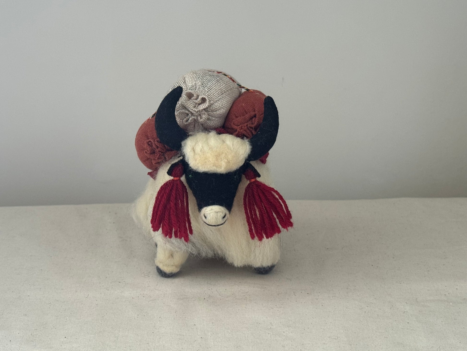 This charming, handcrafted Tibetan Yak is made from 100% natural sheep’s wool, featuring a little bell and a traditional load that celebrates the spirit of Tibetan nomadic life. Each yak is carefully made by women artisans in the Tibetan and Indian communities of Dharamsala through Dolls4Tibet, an initiative that empowers women with new skills, helping them gain independence and sustainable income.