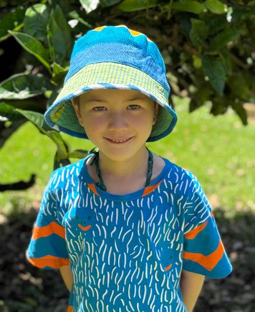 The Two Toned Bucket Hat adds a touch of vibrant, artisan-crafted flair to your summer adventures, making each day under the sun even more colourful and fun.