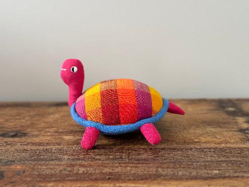 Carefully handcrafted by the talented artisans of Barefoot Ceylon, Wally the Tortoise is part of a delightful collection designed especially for babies. Made from 100% hand-loomed cotton, Wally’s simple yet vibrant design is perfect for tiny hands to hold and explore. The colourful, handwoven patterns capture attention and spark curiosity, making Wally a cherished first toy or a charming addition to your decor.